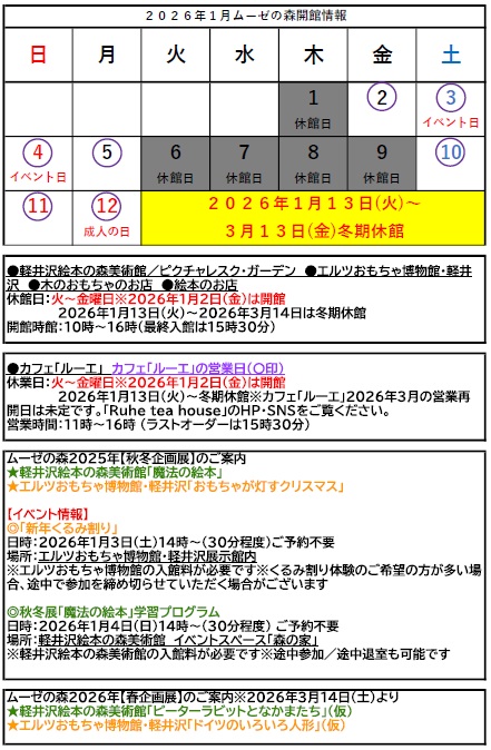 2026年1月12日までの営業日等については、こちらをご覧ください。
