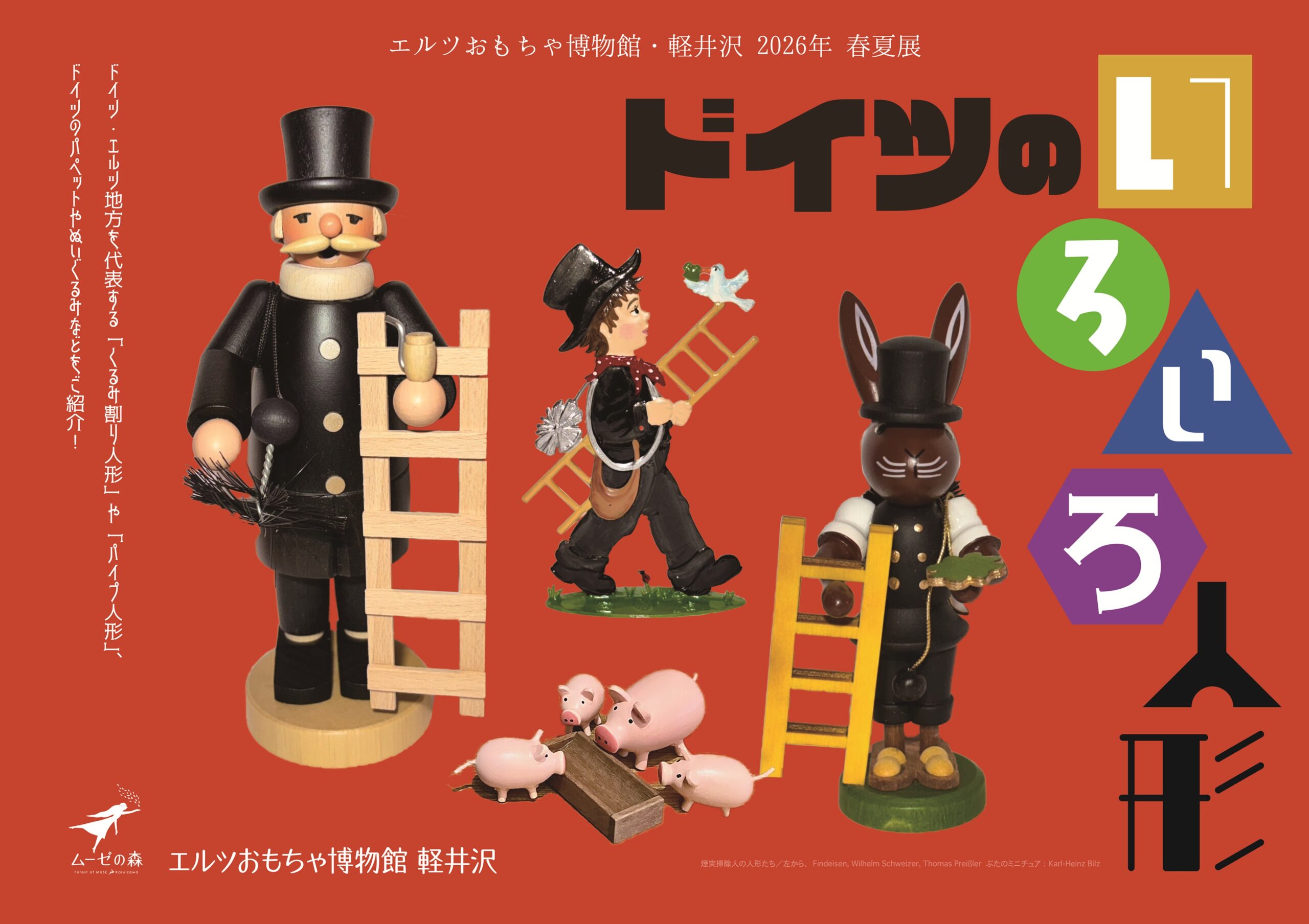 人や動物の姿を再現するだけでなく、ときには仕掛けや機能を持ち、名前をつけて愛され、人の相棒となることもある人形。本展では、エルツ地方をはじめとするさまざまなドイツの人形を展示し、人形の役割や魅力を見つめます。