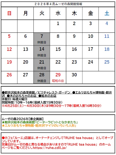なお、2024年5月24日軽井沢美術館協議会の会議において、軽井沢美術館協議会「美術館の日」は廃止となりました。長らくご利用頂きまして、誠にありがとうございました。