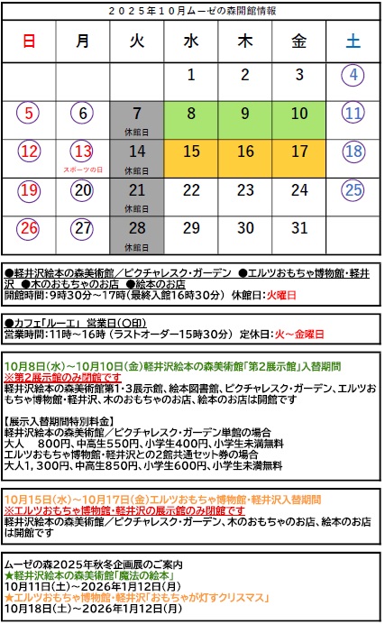 現在発行されている、軽井沢美術館協議会合同パンフレットには、入館料改定前の価格が記載されている美術館・博物館があり、ムーゼの森も該当しています。最新のムーゼの森施設入館料は当館ホームページの「開館情報」に掲載しているものになりますので、何卒よろしくお願いいたします。